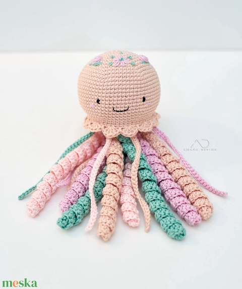 Horgolt NAGY polip virághímzéssel - egyedi színkombinációkban is