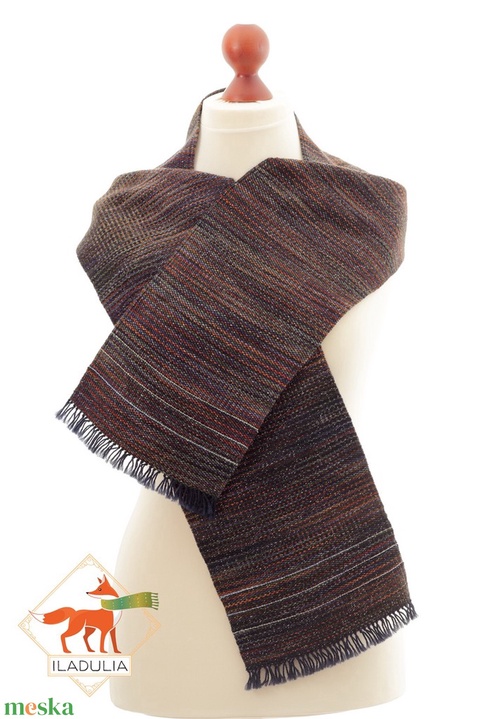 Gyapjú fonalból, szövőkereten készült, kézi szőttes sál, csillám szálakkal. (13)