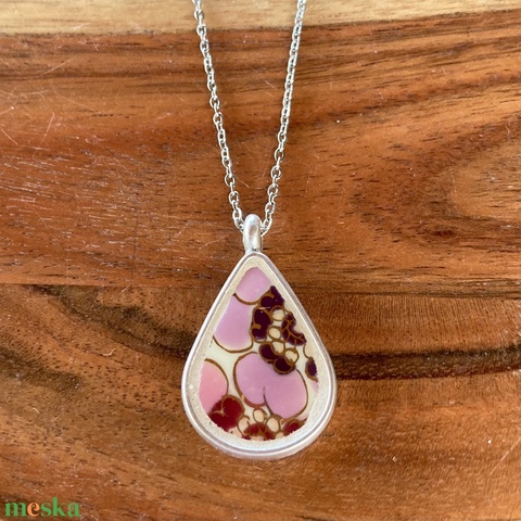 Zsolnay mentett darabok - porcelán nyaklánc - csepp medál nemesacél lánccal