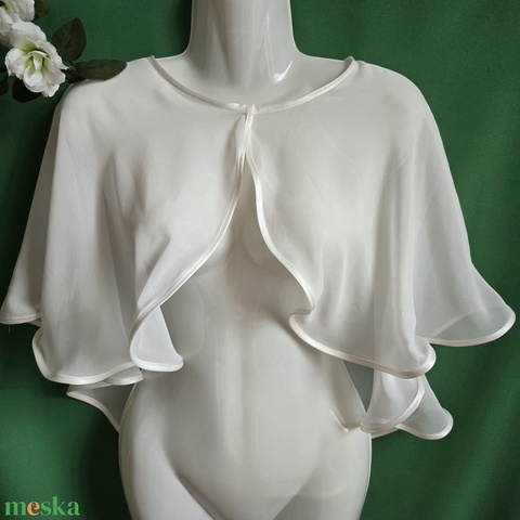Szatén szegélyes, ekrü színű muszlin pelerin, válltakaró, rövid palást