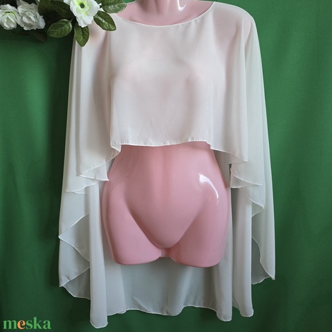 Ekrü színű, elől rövid hátul hosszú menyasszonyi muszlin pelerin, alkalmi válltakaró