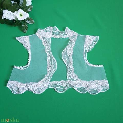 kb. S/M-es ekrü színű menyasszonyi csipkés tüll boleró