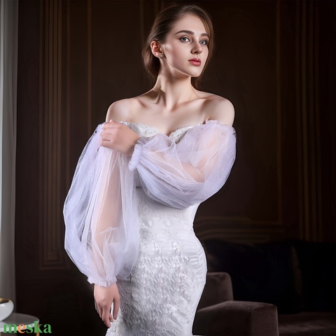 Hófehér színű, menyasszonyi levehető puffos tüll ruhaujj