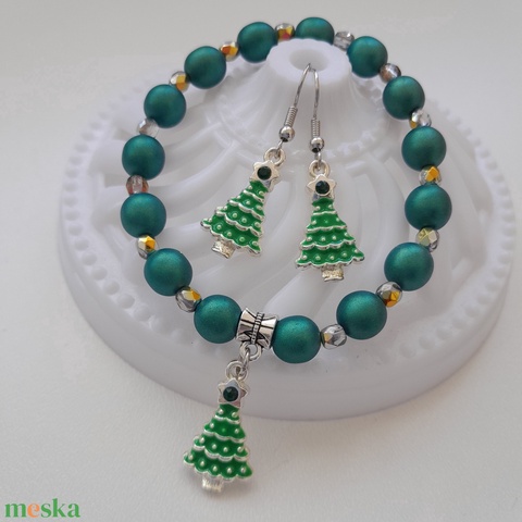 Fenyőfa ékszerszett - karkötő, fülbevaló