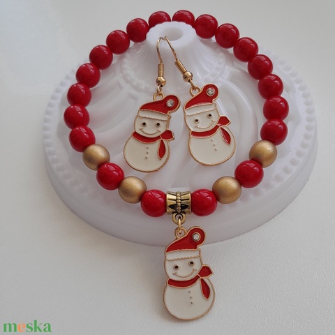Hóember ékszerszett - karkötő, fülbevaló