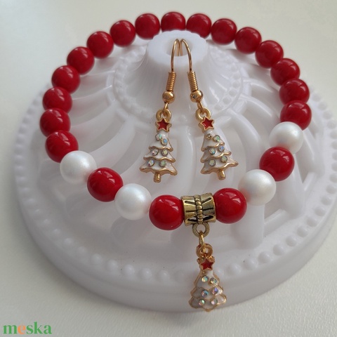 Fenyőfa ékszerszett - karkötő, fülbevaló