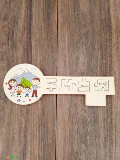Családi kulcsakasztó, kulcstartó, fali kulcstartó- kulcs alakú