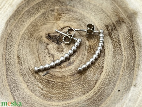 Ezüst vonalka bedugós fülbevaló, pöttyös, hajlított (nagy)