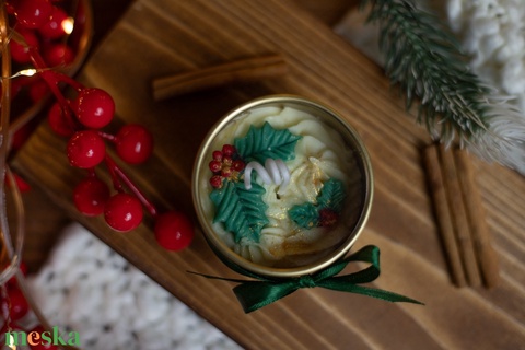 Karácsonyi illatgyertya arany dobozkában, üvegtetővel
