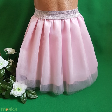 Rózsaszín GYEREK tüll szoknya, 5 rétegű midi alsószoknya csillogós derékkal