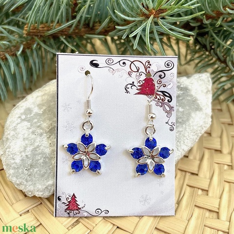 Karácsonyi hópehely kék strasszköves lógó fülbevaló 5627984