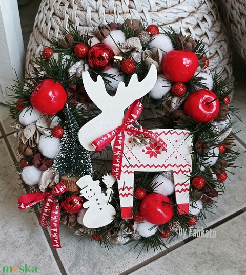 Adventi karácsonyi ajtódísz kopogtató 24cm koszorú