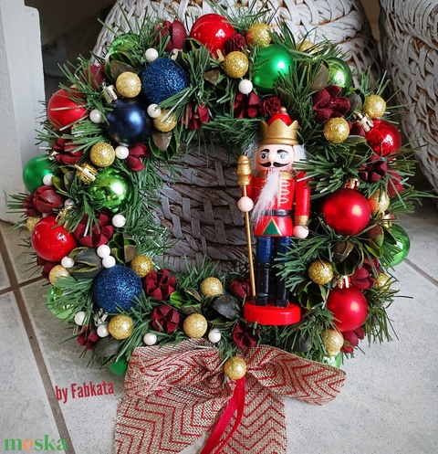 Diótörős adventi karácsonyi ajtódísz kopogtató 24cm koszorú