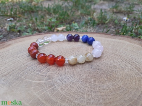 ❁A karkötő kristályai a 7 fő csakrát aktiválják, megtisztítják a diszharmonikus rezgésektől és feltöltik a tökéletes működéshez szükséges energiával.