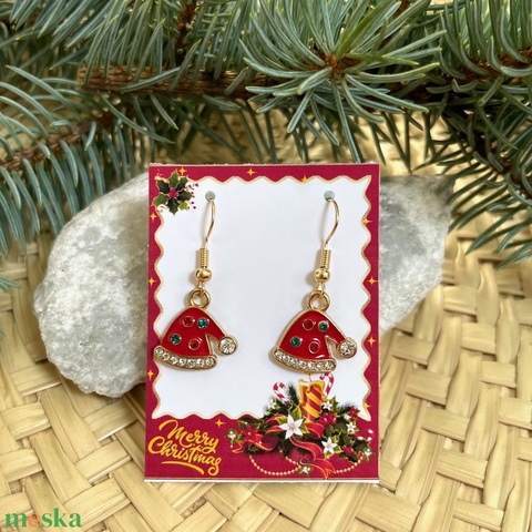 Karácsonyi lógó fülbevaló strasszköves mikulás sapka 5628095