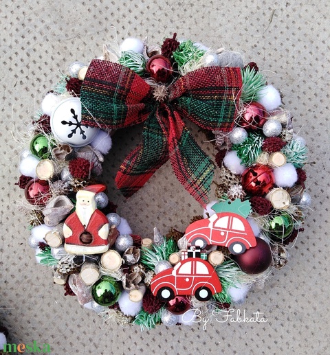 Autós adventi karácsonyi ajtódísz kopogtató 24cm koszorú