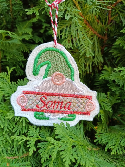 Egyedi névvel hímzett karácsonyi manó Hímzett karácsonyi dísz