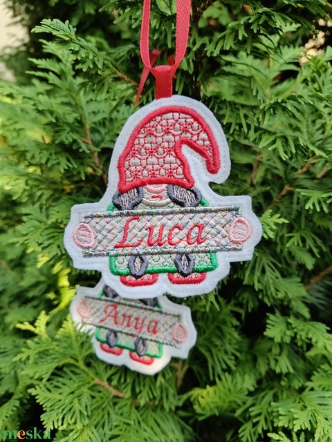 Egyedi névvel hímzett karácsonyi manó Hímzett karácsonyi dísz