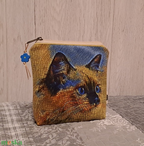 Cica sárga kékben :) neszesszer/sminktáska/betéttartó
