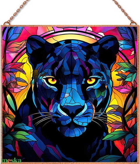Jaguár - Ólomüveg stílusú üvegkép