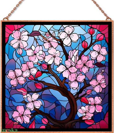 Cseresznye virágzás - Ólomüveg stílusú üvegkép