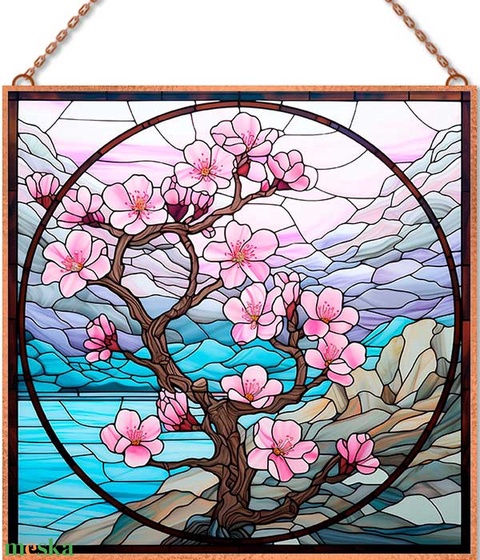 Cseresznye virágzás - Ólomüveg stílusú üvegkép