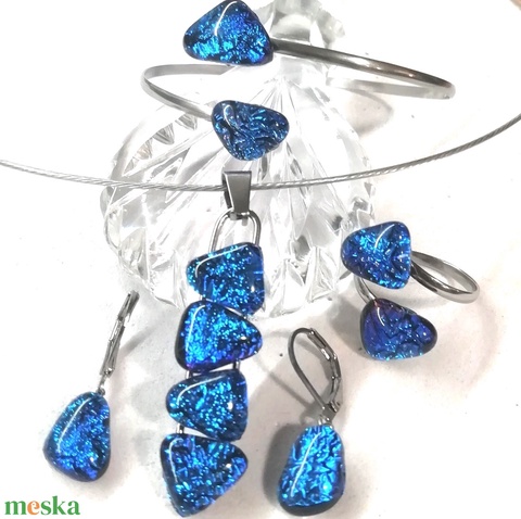 AKCIÓ! NEMESACÉL! Kék-türkiz kavicsok dichroic ékszerszett.