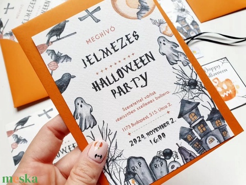 Halloween Meghívó, Halloween party, buli, denevér, szellem + SZERKESZTÉSI DÍJ A LEÍRÁSBÓL