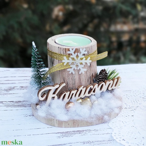 Karácsonyi fenyős farönk mécsestartó