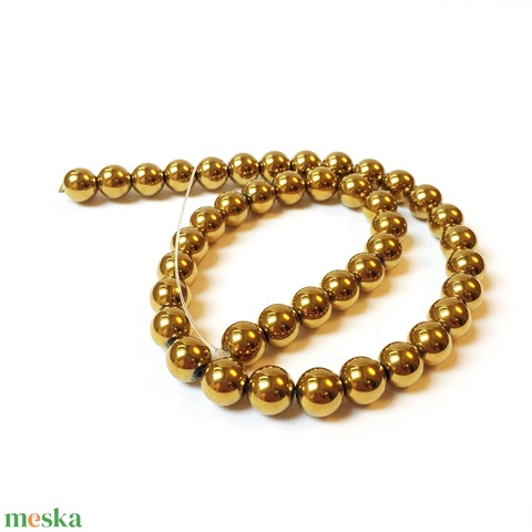 Hematit festett arany ásványgyöngy, 10 mm, 1 szál