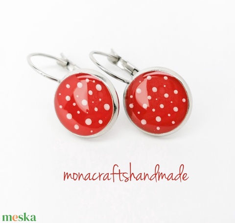 Miranda - piros alapon fehér pöttyös franciakapcsos fülbevaló acél alappal