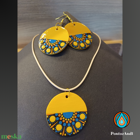 Azték stílusú fülbevaló és nyaklánc szett