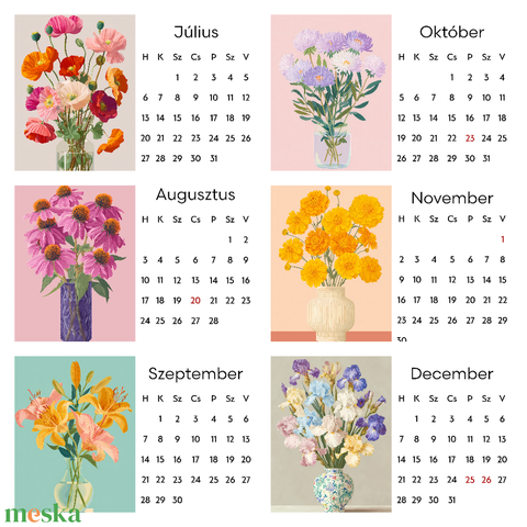 2026-os Kerti virágok asztali naptár – A5 és A6 méret, fa tartó talppal