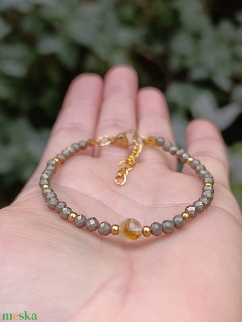 Bőségvonzó ásványkarkötő pirittel és citrinnel
