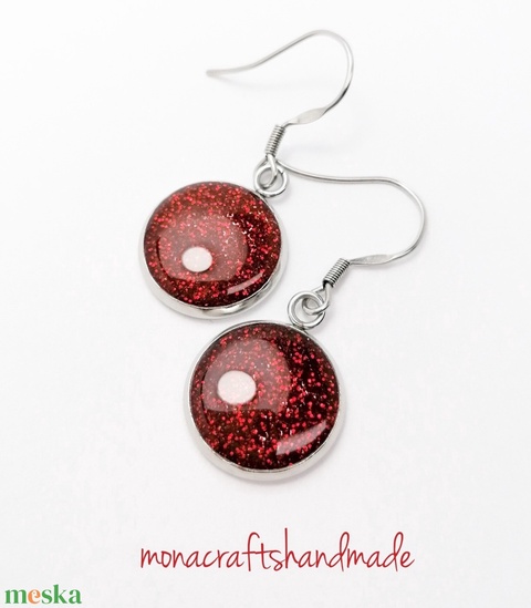 Gitta - piros csillámos fülbevaló acél alappal választható méretben
