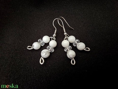 - Anyaga: nemesacél, howlit ásványgyöngyök, fazettált hegyikristály