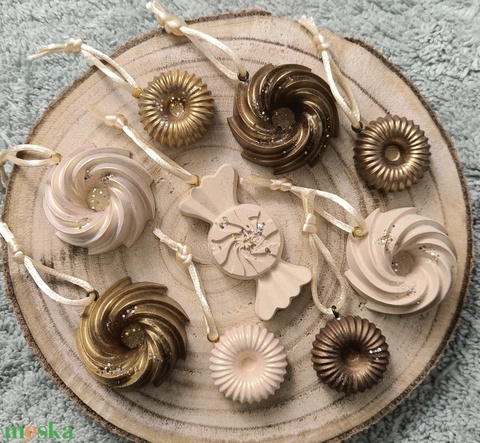 Karácsonyfadíszek pezsgő-bézs-réz-arany színekben