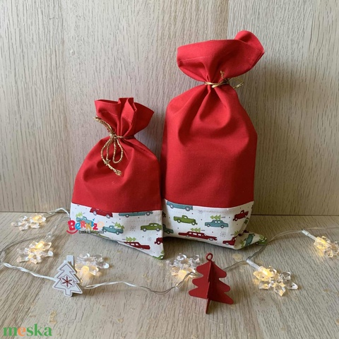 Fehér autó mintás karácsonyi zsák szett