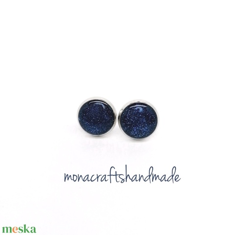 Rebeka - sötétkék csillámos fülbevaló acél alappal választható méretben