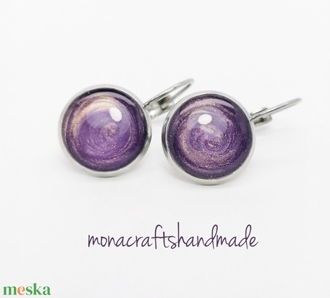 Lilla - aranylóan csillogó lila franciakapcsos fülbevaló acél alappal