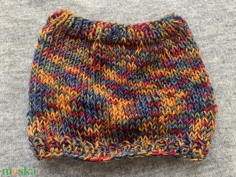 Sál Őszi erdő színeiben pompázó narancsos kékes rózsaszínes és olivás melírozású kézi kötésű sál