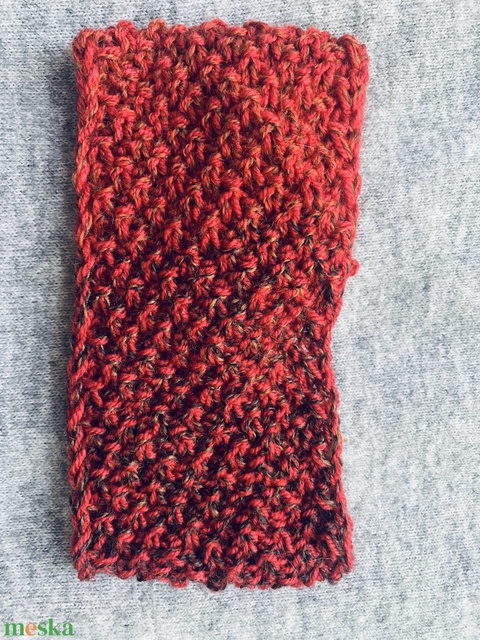 Fejpánt, fülmelegítő, homlokpánt rozsda vörös színekben pompázó gyapjú fonalból kézzel kötött fülmele