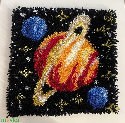 Kézzel készített subázott párnahuzat – kozmikus bolygó minta (40×40 cm)