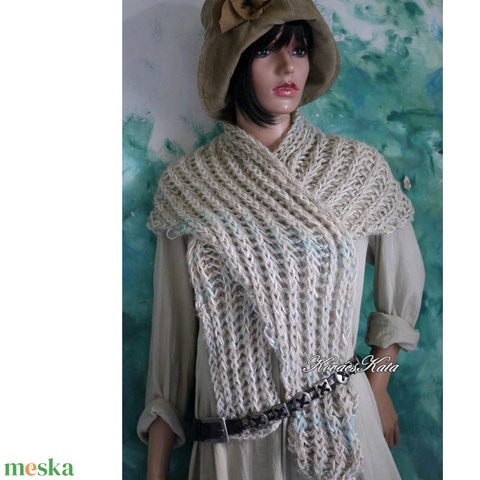 TÜNDE KENDŐ - kézzel kötött puha, vastag vállkendő / bézs