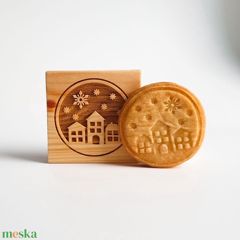 Házak és hóesés - Karácsonyi mézeskalács kekszpecsét