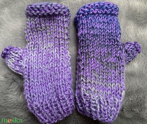 kesztyű lila és szürkés melírozású kézi kötésű ujjatlan kesztyű eladó