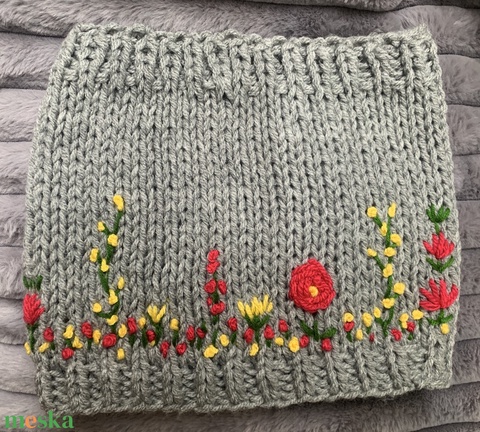 Körsál virágos kertet idéző vidám világos szürke színű színű sál színes virágokkal