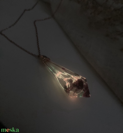 Medálos nyaklánc - Fluoreszkáló kristály inga formájú műgyanta medál