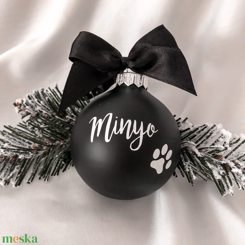 Névre szóló üveg karácsonyfa dísz - Fekete