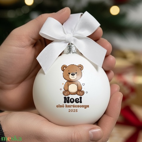 Névre szóló üveg karácsonyfa dísz - Macis - Első karácsony